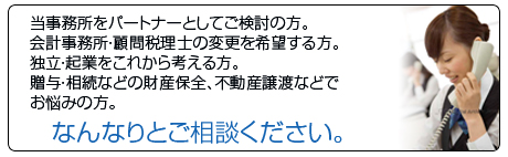 ご相談者、ご相談内容によっては当事務所の営業方針上、ご対応をお断りする場合がありますので、予めご了承ください。また、法人、事業所の実在調査、業種調査などの与信調査を行った上で回答及びご相談をご検討する場合もあります。